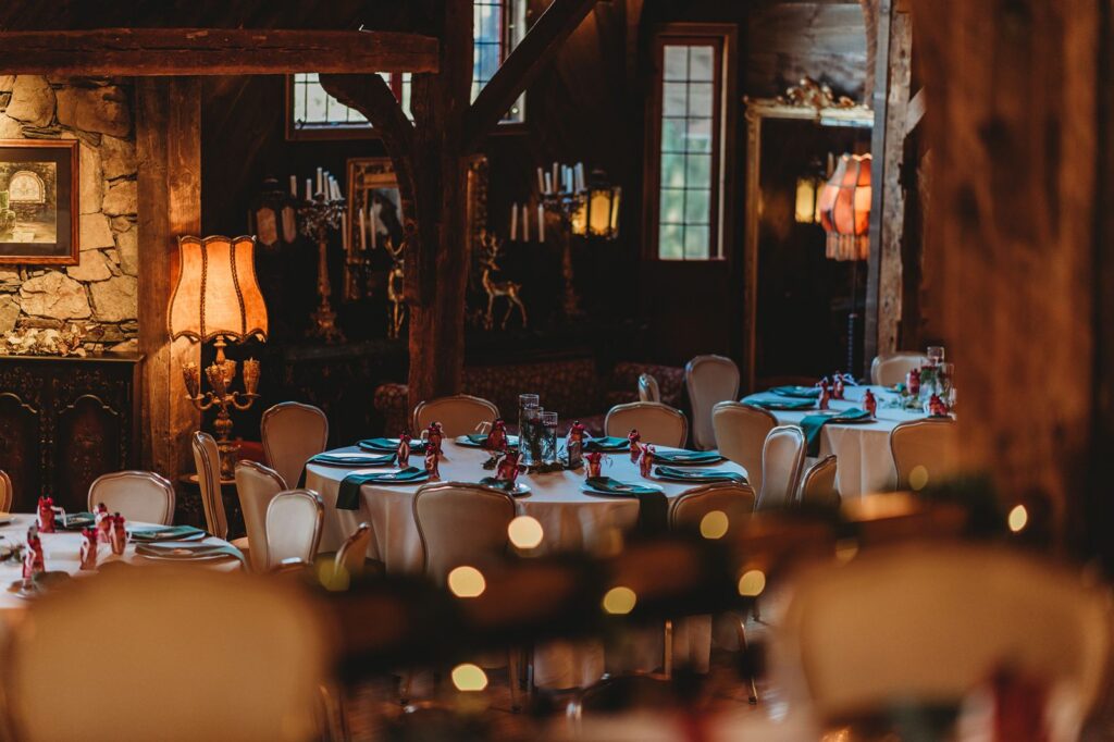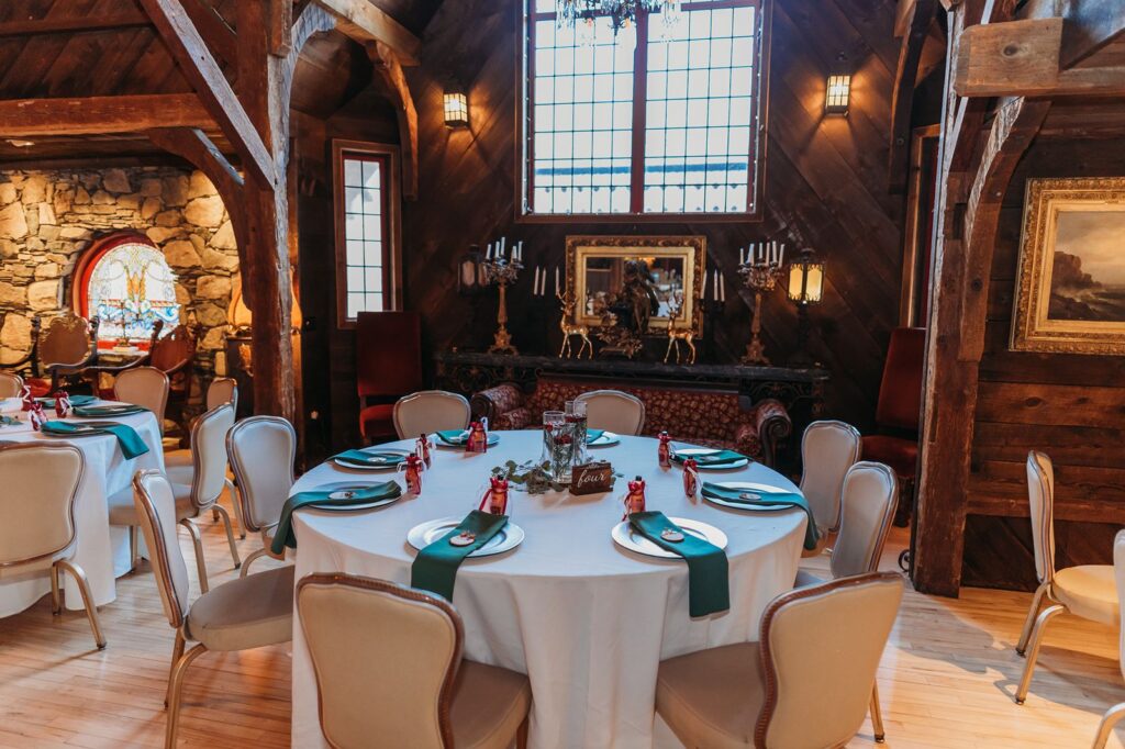 Originally a barn, built in the late 1800’s, the castle was renovated in the 1990’s to become a gorgeous fairytale venue, unlike any other. From the addition of the intricately designed crystal chandeliers to the five fireplaces, and 30 foot ceilings, it’s a show stopper.